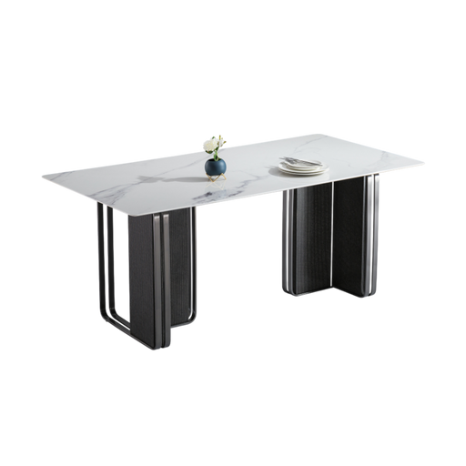 Novena Furniture SingaporeThe ND618 Dining Table features a sturdy sintered stone tabletop with a base panel, supported by a bold black sand carbon steel leg frame. Its mode...