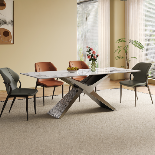 Novena Furniture SingaporeElevate your dining space with the Sintered Stone Dining Table ND6386, where durability meets daring design. Its sintered stone tabletop offers unm...
