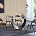Make a powerful impression with the ND6111 Dining Table. Its durable sintered stone tabletop sits atop a glossy black titanium stainless steel leg frame, combining modern design with uncompromising style. This piece is perfect for those who dare to redefine elegance in their dining space.