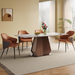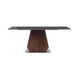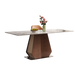 Command attention with the ND6315 Dining Table, boasting a durable sintered stone tabletop paired with a grey titanium stainless steel leg frame featuring a refined wood grain finish. This modern, stylish centerpiece challenges convention and adds a fearless touch of sophistication to any dining space.