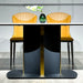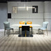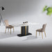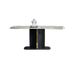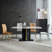The ND668 Dining Table features a durable sintered stone tabletop with a solid base panel, supported by a black sand carbon steel leg frame accented with stainless steel titanium trim. Its modern, stylish design delivers a daring edge, perfect for those who want to make a bold statement in their dining space.