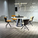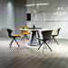 Command attention with the Sintered Stone Dining Table ND675, featuring a matte sintered stone tabletop supported by a sleek base panel. Its matte black carbon steel leg frame exudes modern strength and edgy style, making it the daring centerpiece your dining space deserves.