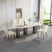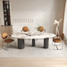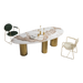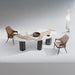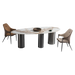The Sintered Stone Dining Table ND696 fuses daring design with durable craftsmanship. Its sleek sintered stone tabletop rests on a sturdy base panel, complemented by a titanium-finished stainless steel leg frame that radiates modern sophistication. This table is perfect for those who want to make an unforgettable style statement in their dining area.