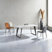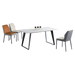 The ND618 Dining Table features a sturdy sintered stone tabletop with a base panel, supported by a bold black sand carbon steel leg frame. Its modern, stylish design makes a daring statement, perfect for those looking to elevate their dining space with contemporary edge and strength.