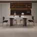 Make a bold statement with the Sintered Stone Dining Table ND6324. Featuring a resilient sintered stone tabletop with a sturdy base panel, it pairs seamlessly with a natural stainless steel leg frame enhanced by plywood and a wood veneer finish. This modern, stylish design pushes boundaries and transforms your dining area into a daring showcase of strength and elegance.
